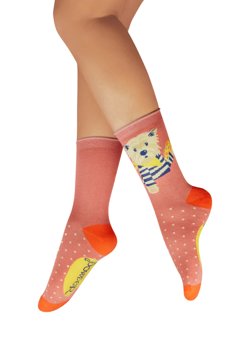 • Ladies Knitted Ankle Socks Puppy Pizza Lover