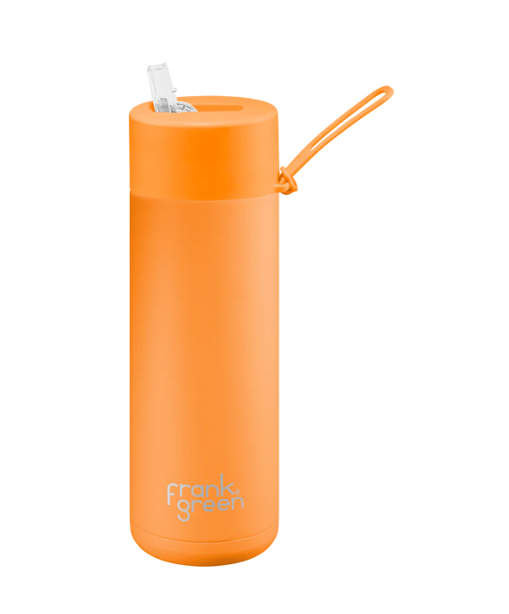 Stainless Steel Ceramic Reusable Bottle Neon Orange with Straw Lid